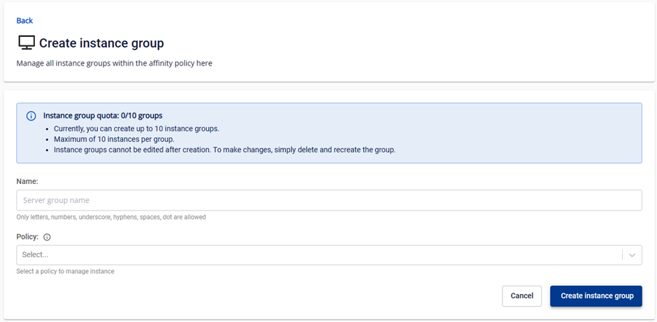- Policy: tùy chọn chính sách Soft Affinity hoặc Soft Anti Affinity để áp dụng cho instance group bạn đang tạo