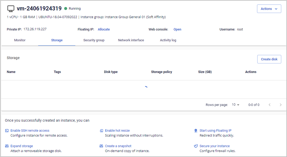 Bước 2 : Nhấn Create instance. Hệ thống sẽ tiến hành khởi tạo và thông báo kết quả.