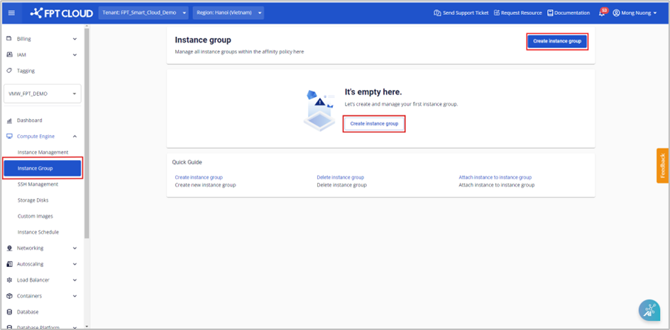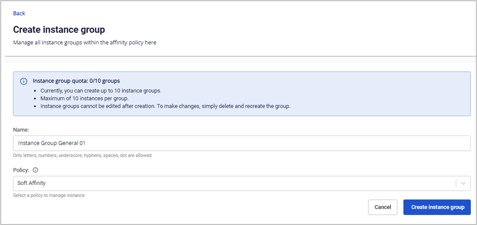 Lưu ý: Hệ thống hỗ trợ tạo tối đa 10 instance groups, và mỗi instance group chỉ có thể gắn với tối đa 10 instances.