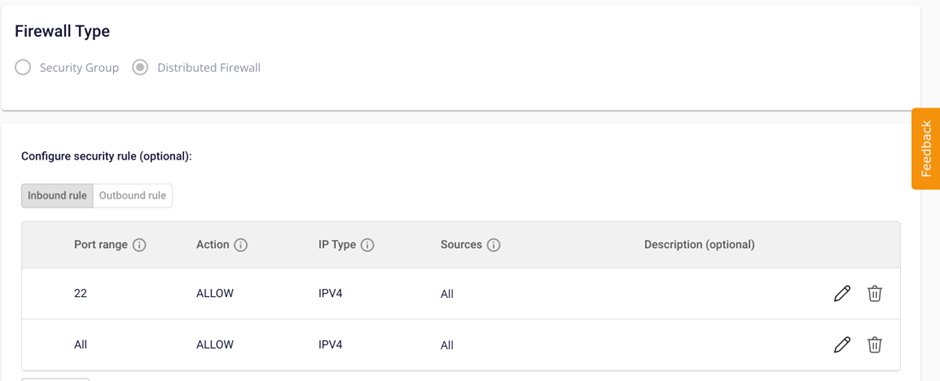 • Distributed Firewall: (Chỉ có trên dịch vụ Specific) Tường lửa kiểm soát traffic ra vào máy ảo trong mạng nội bộ.