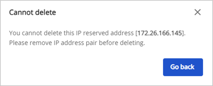 Lưu ý: Nếu địa chỉ private IP đang được sử dụng hoặc IP address đang được gắn vào address pair thì không thể xóa được.