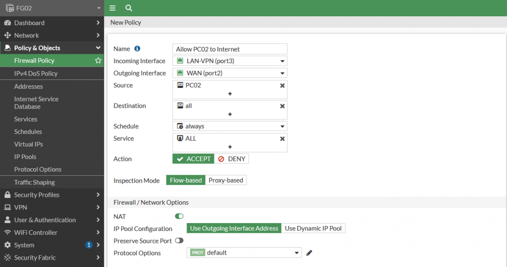 • NAT: Use Outgoing Interface Address – NAT sử dụng IP public đã NAT qua Port 2 (WAN).Userguide Fortigate FPT NGFW 2022 11