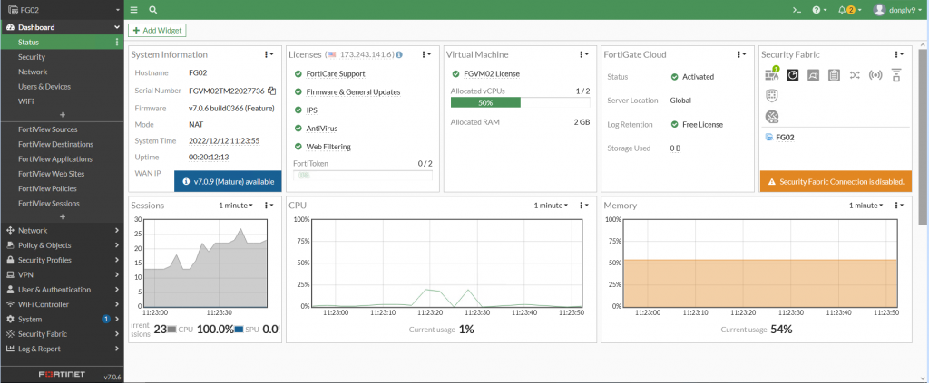 Bước 1: Đăng nhập vào giao diện quản trị của Fortigate NGFW thông qua địa chỉ IP và user/password đã cấu hình.