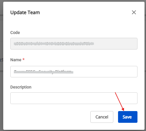 Bước 3 : Điền hết các thông tin như Team Name và Team Description
