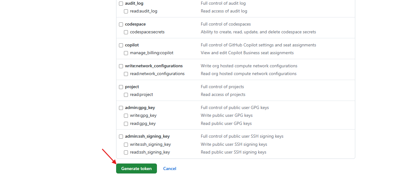 Bước 2 : Sau khi thiết lập quyền truy cập vào Private/public repository , nhấn vào Create a personal access token , sau đó bạn sẽ được chuyển đến GitHub để tạo token