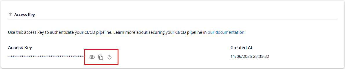Bạn có thể copy hoặc reset Access Key để phục vụ cho tích hợp vào CI/CD pipeline