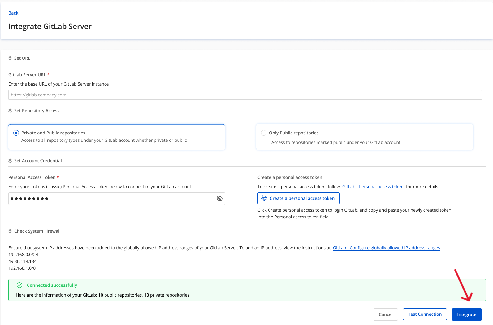 Chỉ Org Admin và Team Manager có quyền chỉnh sửa tích hợp GitLab Server Xem thêm về phân quyềntại đây