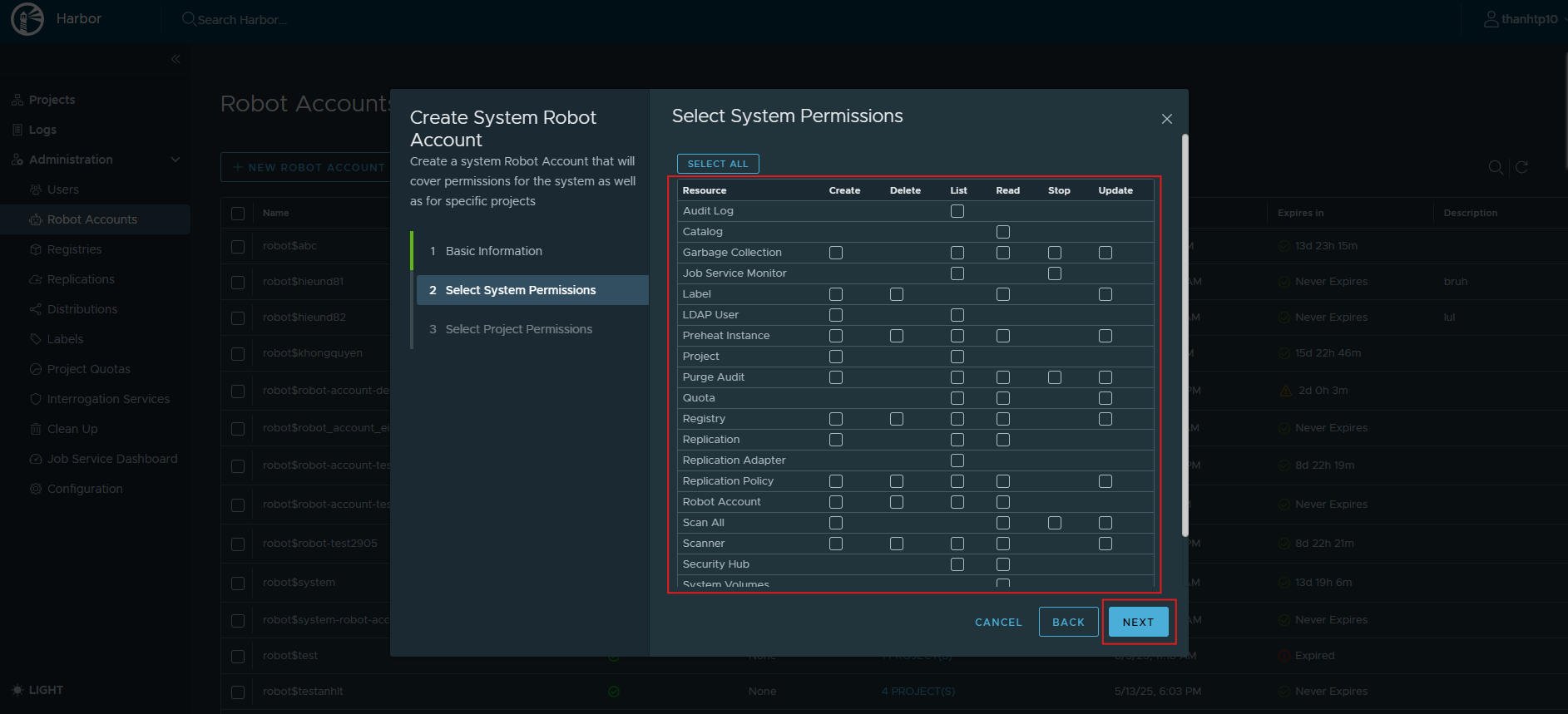 1. Tạo Robot Account - Harbor