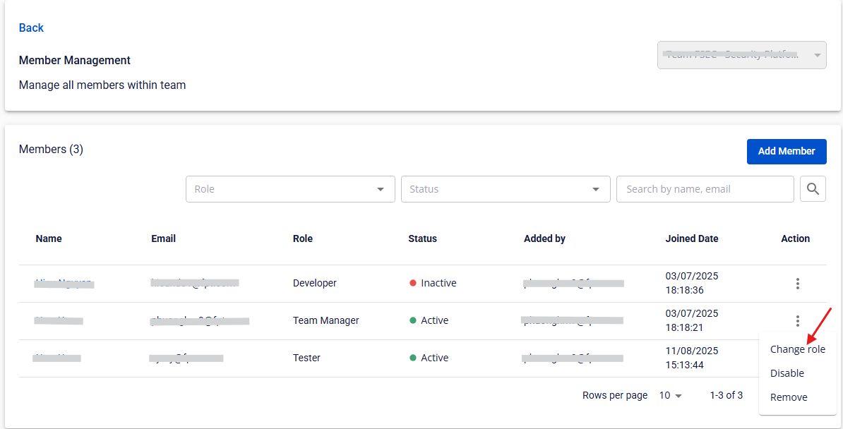 2. Change Role của Member