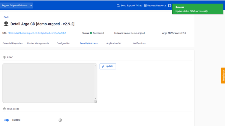 • Bước 1 : Tại màn hình Security & Access > OIDC Scope , thực hiện Enable OIDC Config như sau: