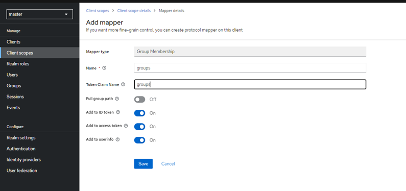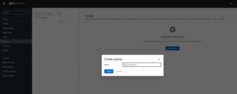 Trong phần này sẽ hướng dẫn người dùng tích hợp KeyCloak với ArgoCD để xác thực người dùng ứng dụng. Cần tạo một client trong KeyCloak và cấu hình ArgoCD sử dụng KeyCloak trong việc xác thực, sử dụng các nhóm được cấu hình trong KeyCloak để xác định các quyền user được sử dụng trong ArgoCD. Bước 1 : Tạo một Client trong KeyCloak Thực hiện Login tới KeyCloak server > Lựa chọn Realm để tạo Client > Create Client : Click Save > Credential , Thông tin Client secret được sử dụng để cấu hình thông tin trên Portal FPT Cloud. Bước 2 : Thực hiện cấu hình Group Claim bằng việc tạo mới Client scopes: Click Save để tạo mới Client Scope. Trong tab Mapper > Configure a new mapper > Group Membership : Bước 3 : Thực hiện cấu hình groups scope trong Client: Tạo group: Tạo User và add tới group: Bước 4 : Cấu hình ArgoCD Policy: Cấp quyền admin/readOnly cho usergroup: g, ArgoCDAdmins, role:admin g, ArgoCDAdmins, role:readonly Bước 5 : Login ArgoCD qua KeyCloak OIDC Authentication: Kết quả sau khi login qua KeyCloak: