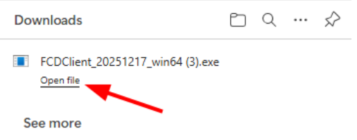 Thông tin URL này do quản trị viên khách hàng cung cấp Truy cập đường link dịch vụ bằng trình duyệt web, chọn Access through FPT Cloud Desktop Client file 2.Tải xuống, cài đặt và mở ứng dụng FCD Client sau khi hoàn tất cài đặt Hệ thống sẽ tự động tải xuống bản Client mới nhất tương thích với hệ điều hành Windows (người dùng có thể chủ động cài đặt) Trường hợp tải xuống hiện cảnh báo trên Browser như hình dưới: file Chọn dấu ba chấm > Keep > Keep anyway file Sau khi việc tải xuống hoàn thành, tiến hành cài đặt ứng dụng: Chọn Open file để cài đặt ứng dụng vào thiết bị. file Với Windows: Tại Popup Windows protected your PC, chọn hyperlink "More info" và button "Run anyaway" Với MacOS: