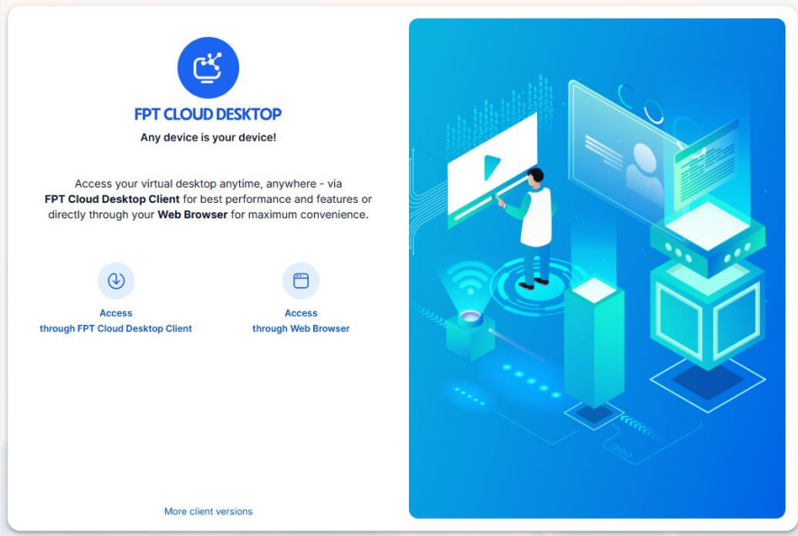 Truy cập đường link dịch vụ bằng trình duyệt web, chọn Access through FPT Cloud Desktop Client