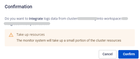 Xuất hiện hộp thoại xác nhận người dùng có muốn tích hợp logs/metrics của cluster lên workspace tương ứng hay không.