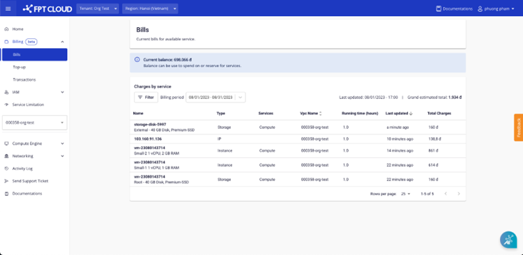 • Khách hàng cần có ít nhất 50.000đ + tiền sử dụng storage trong 1h để khởi tạo