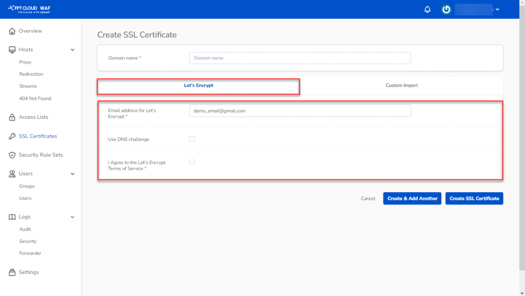 1. Let’s Encrypt là chứng nhận (CA) mở, miễn phí và tự động, có sẵn trên FPT Cloud WAF.