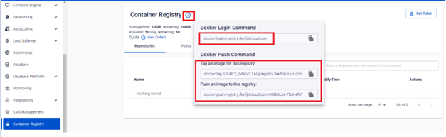 Bước 4 : Di chuyển chuột vào icon ⓘ để lấy thông tin để login, tag, push images