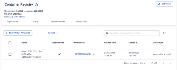 Bước 1 : Trên menu FPT Portal chọn Container Registry. Chọn tab Robot Account