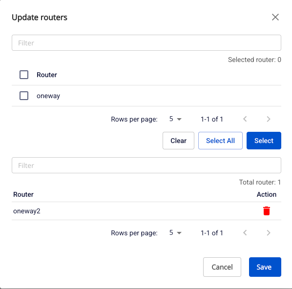 • Hiển thị popup cho phép thêm hoặc xóa các router trong group.