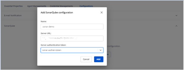 -Credential với kind Secret Text để authen cho SonarQube: