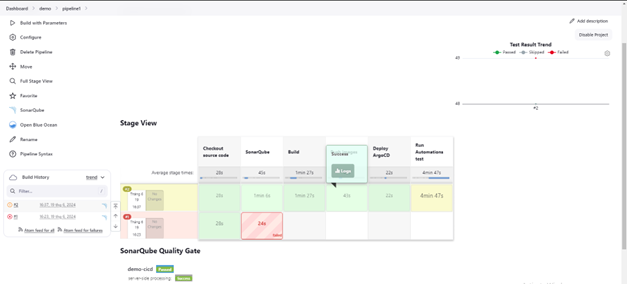 Bước 7. Sau khi deploy ứng dụng, hệ thống CI/CD thực hiện chạy Automations test để kiểm thử tự động trên môi trường staging