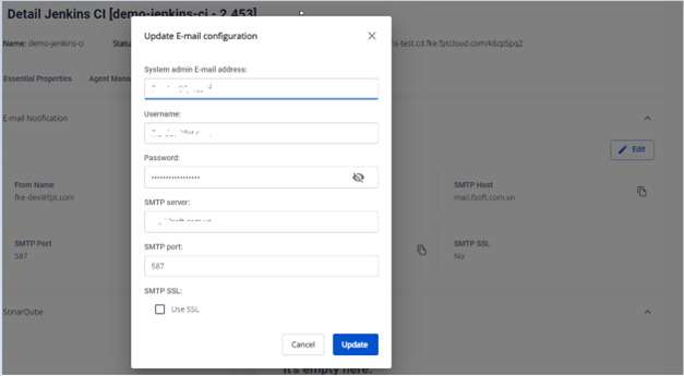 - Cấu hình Email Notifications trên FPT Cloud Portal để tích hợp trong pipeline