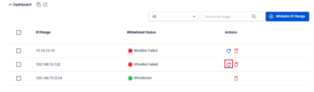 Áp dụng cho các IP có trạng thái 'Whitelist Failed'/'Blacklist Failed'.