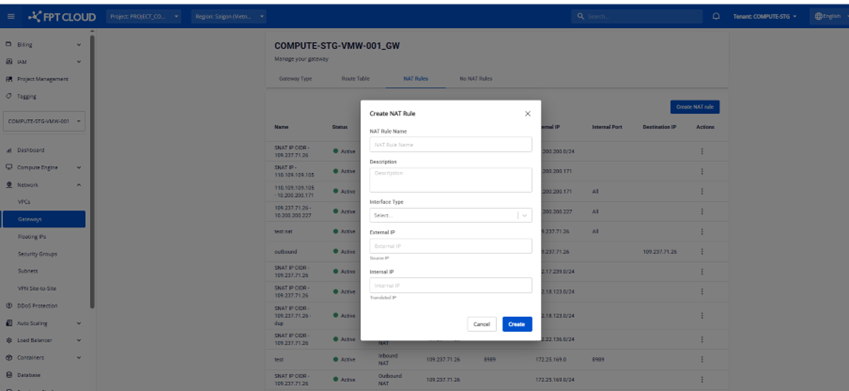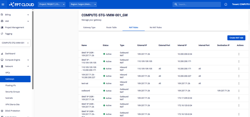 Người dùng có thể bấm nút Create NAT Rule để tạo mới 1 NAT Rule