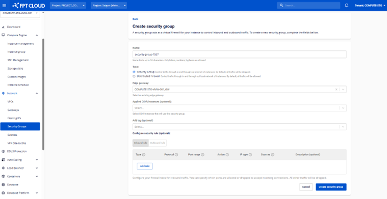 Ở màn hình Instance Detail, trường hợp Instance chưa được gán IP mà người dùng bấm allocate IP, nếu Instance thuộc Gateway lại custom, người dùng sẽ không được gán IP. Để gán được IP, người dùng cần tạo NAT Rule