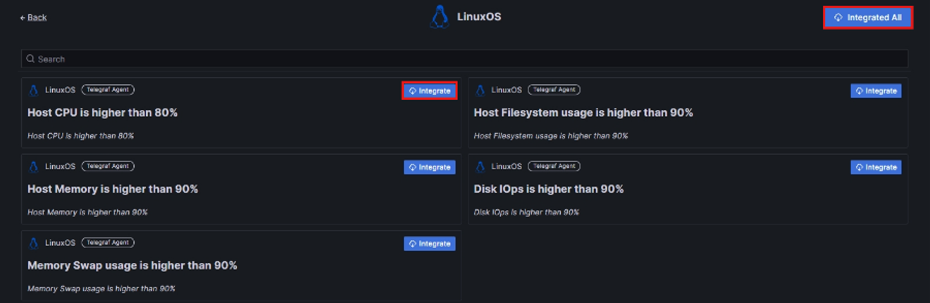 Bước 4: Ấn Integrate từng Alert rule mong muốn