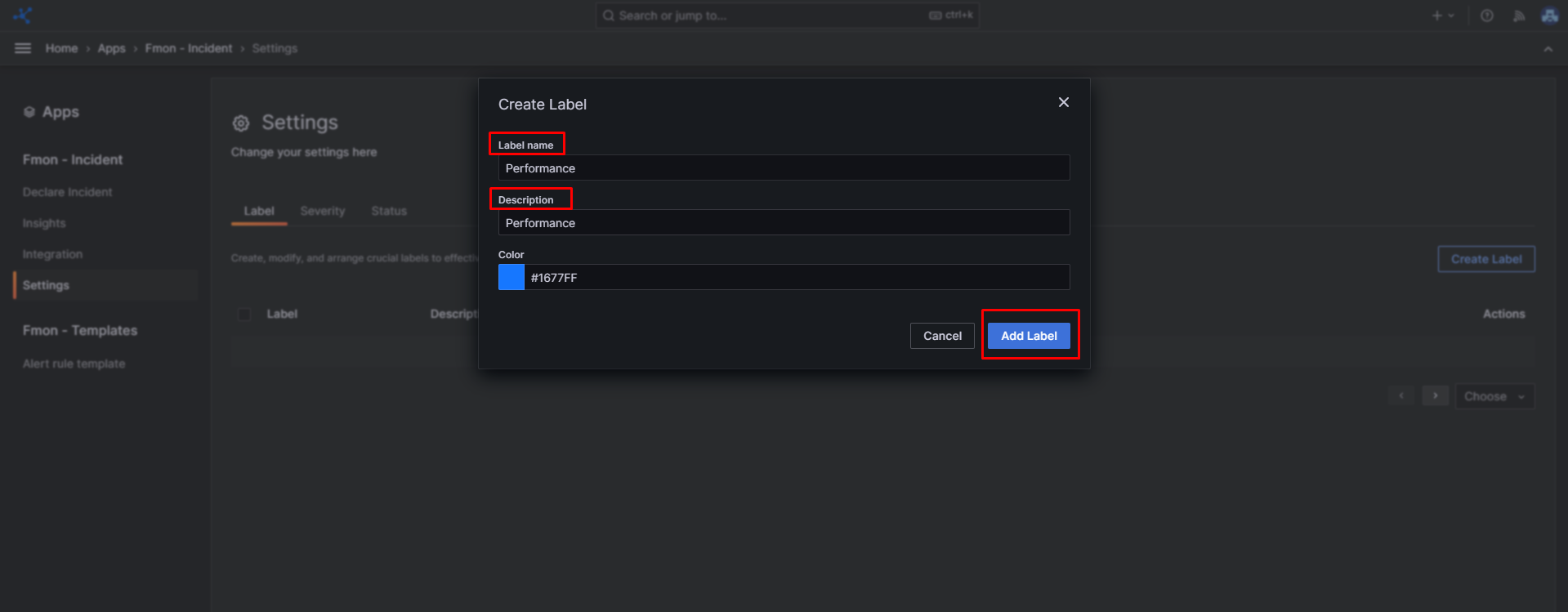 Bước 4 : Cung cấp thông tin Name , Description cho label