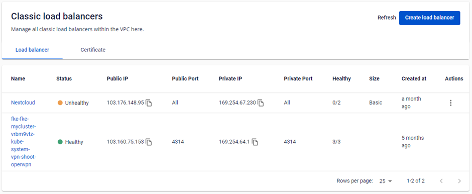 Bước 1 : Truy cập vào trang Load Balancer details bằng cách chọn tên Load Balancer tương ứng ở menu Load Balancer Management.