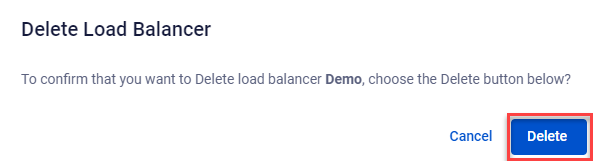 Nếu không còn nhu cầu sử dụng, bạn có thể xóa Load Balancer khỏi VPC để tiết kiệm tài nguyên và tránh phát sinh chi phí. Bước 1 : Trên bảng quản trị Load Balancer Management , trong phần Action của LB cần xóa, chọn Delete. Bước 2: Hệ thống sẽ hiển thị popup xác nhận thông tin xóa, chọn Delete để xác nhận.