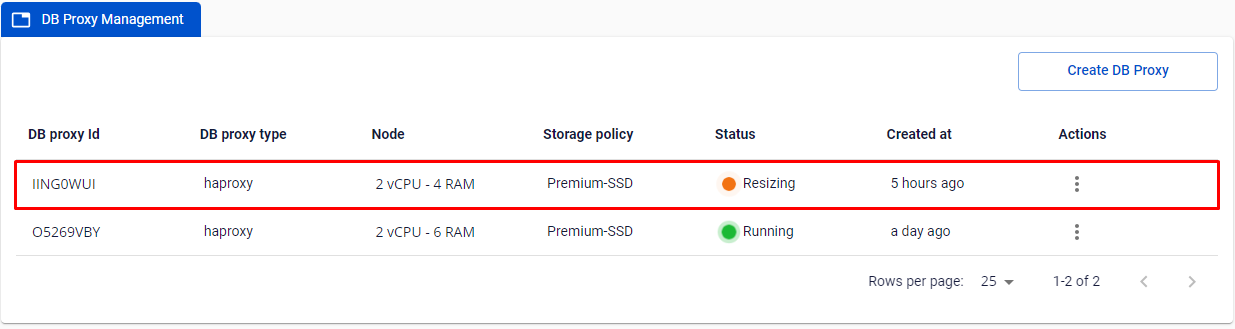 • DB Proxy sẽ ở trạng thái Resizing và không thể thao tác gì thêm cho tới khi hệ thống process xong. Quá trình này kéo dài trong vòng 5 – 7 phút.