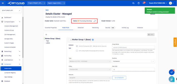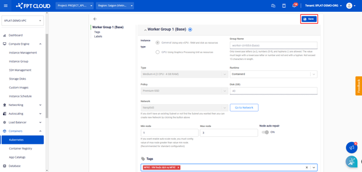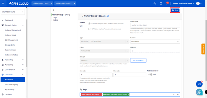 Bước 2 : Tại mục Nodes Pool , chọn Tag muốn sử dụng cho worker group.