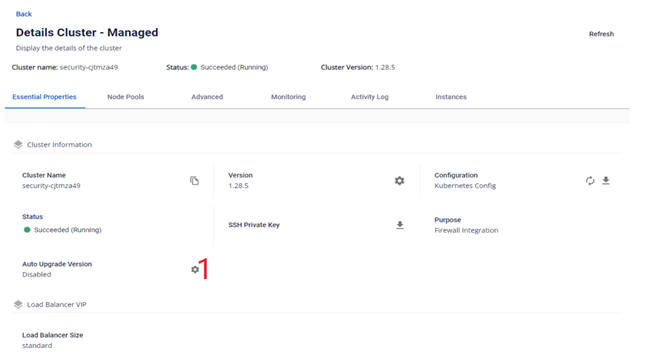 - Ví dụ cluster đang sử dụng version 1.24.14 mà FPT Cloud đang support version kubernetes từ 1.26 đến 1.29, cluster này sẽ không thể sử dụng tính năng này, nếu muốn sử dụng tính năng này cần tự chủ động upgrade cluster lên version 1.25.