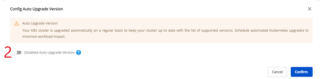 2. Thay đổi cấu hình Auto Upgrade Version với các cluster đã tồn tại