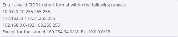 - Internal Classic Loadbalancer IP Range (Deprecated) : Dải IP dành cho Load Balancer Classic hay còn gọi là LBv1 (sẽ ngừng cấp phát từ 19/04/2025). Cách cấu hình Internal subnet Load Balancer (CIDR) hợp lệ: