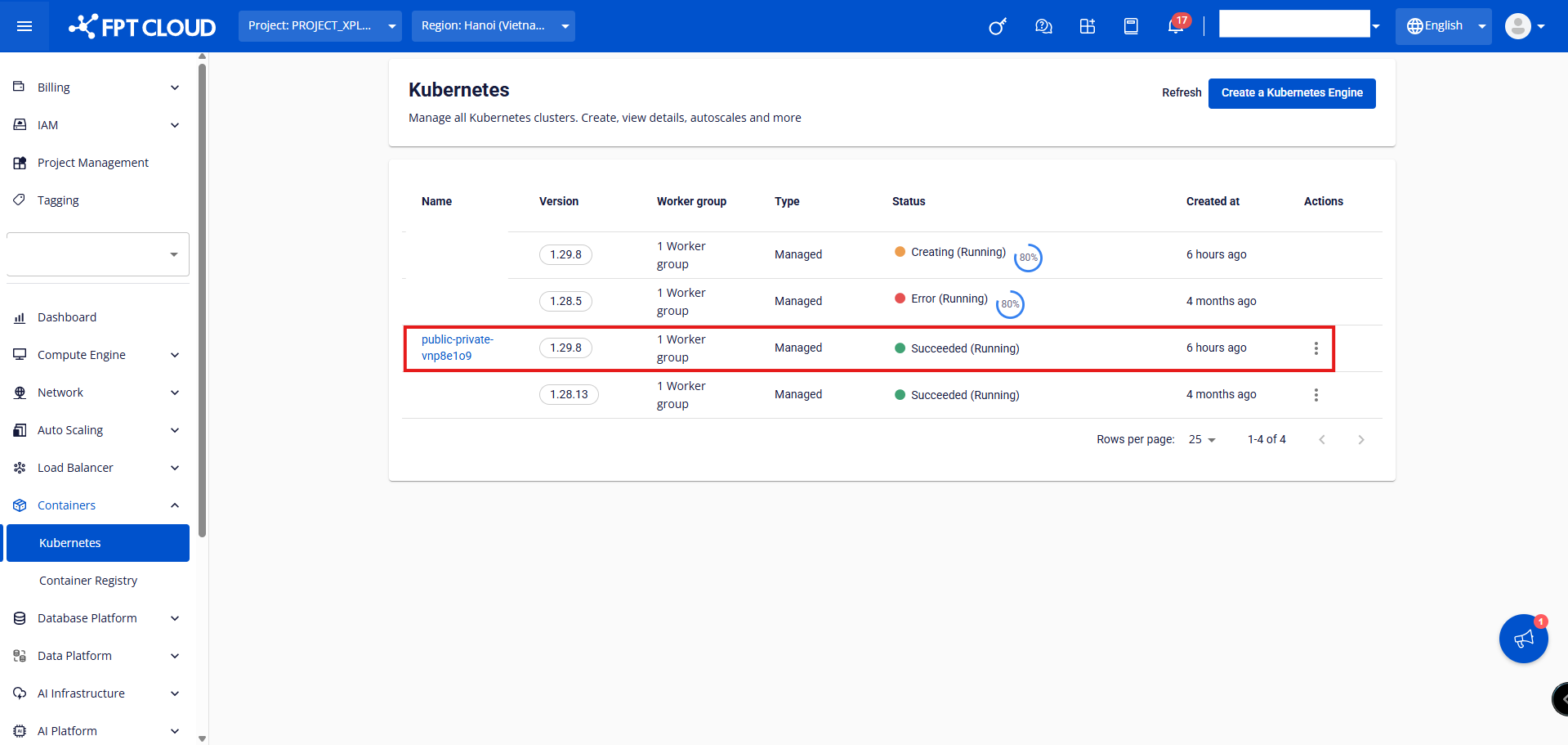 Để thay đổi Access Mode của cụm Kubernetes trên FPT Cloud, khách hàng làm theo hướng dẫn sau: Lưu ý: