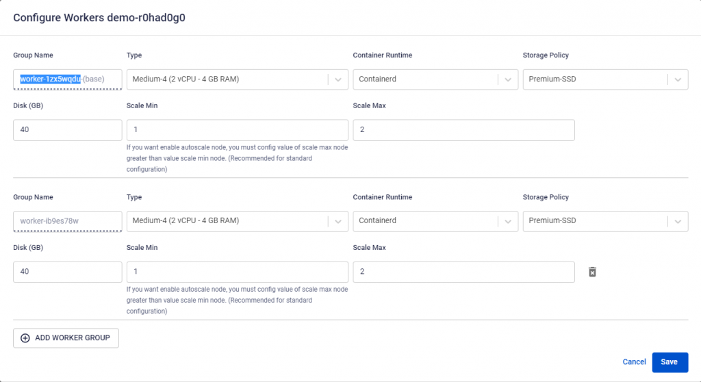 Ví dụ triển khai ứng dụng trên cluster có 02 worker pools: