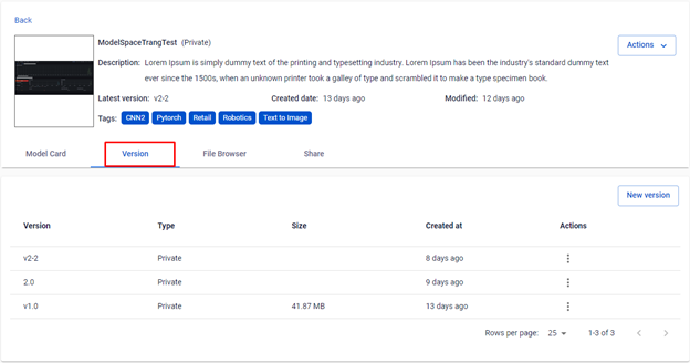 - Modified: Ngày chỉnh sửa thông tin model gần nhất