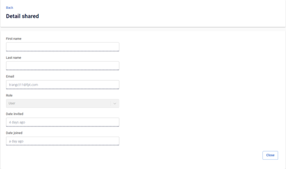 model-hubCác bước thực hiện:Share Detail Joined Các bước thực hiện: Bước 1: Click vào 1 model để xem chi tiết > Chọn tab Share Bước 2: Click vào dấu 3 chấm cột Action > Chọn Detail Bước 3: Hiển thị thông tin user bao gồm: Name, Email, Role và thời gian truy cập vào model