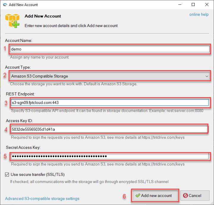 Bước 3: Nhập các thông tin tương tự khi sử dụng S3 Browser.
