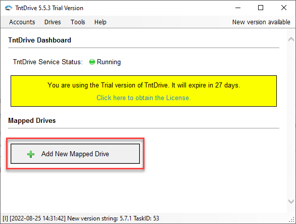 Bước 4: Khách hàng sau khi đã nhập thông tin account trong công cụ TntDrive > Chọn Add New Mapped Drive.