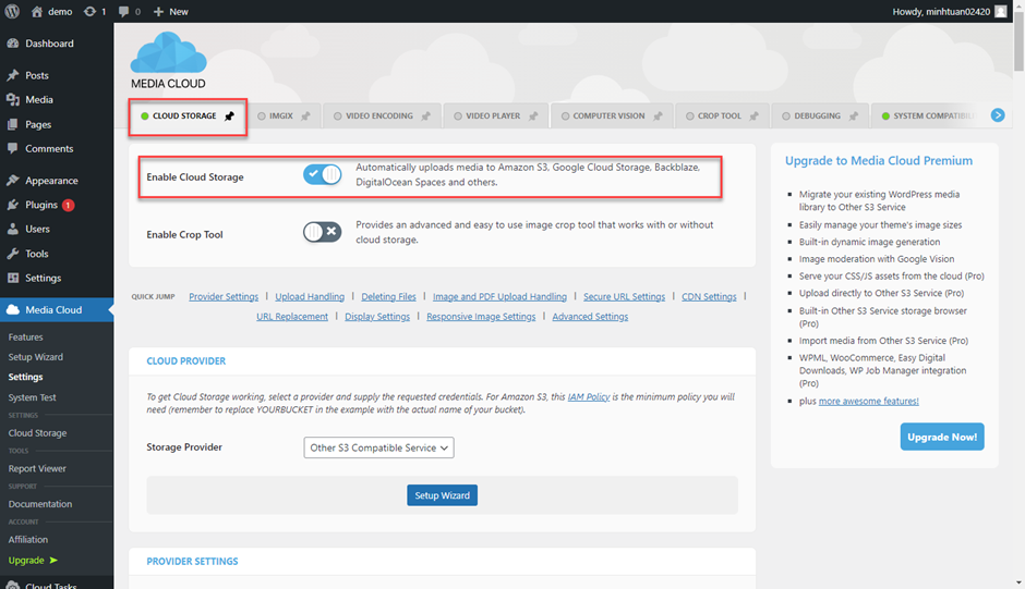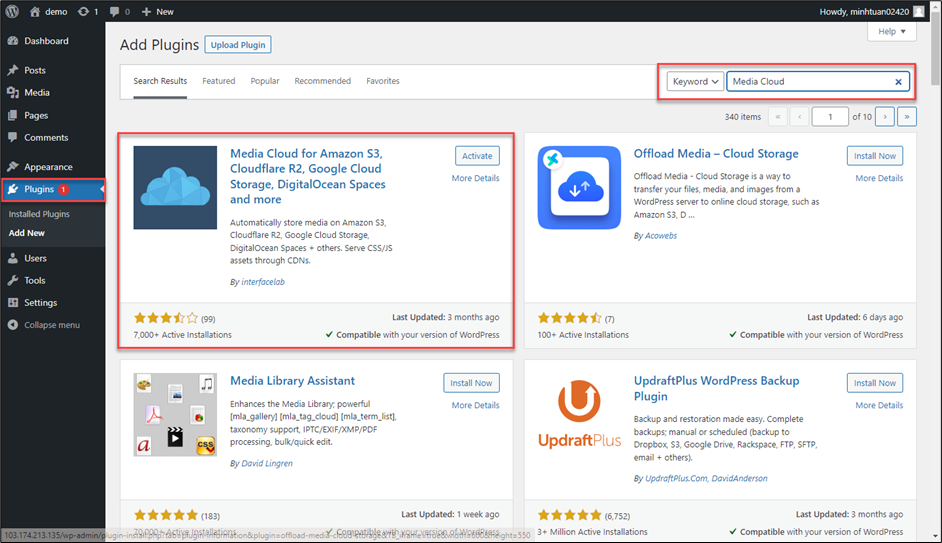 Mặc định WordPress sẽ không hỗ trợ việc dùng trực tiếp S3 Storage để lưu trữ tệp. Tuy nhiên một số plugin có thể giúp bạn làm việc này. Về cơ bản các plugin này vẫn sẽ hoạt động dựa trên trình upload mặc định của WordPress. Sau khi WordPress upload file thành công, plugin sẽ tạo một bản copy sang FPT Object Storage và tự động xóa file gốc + thay thế toàn bộ link trên wordpress bằng link trên FPT Object Storage. Trên thị trường có một số plugin phổ biến như WP Offload Media Lite , MediaCloud , Media Library Folders Pro S3 , W3 Total Cache … Trong bài viết này chúng tôi sẽ hướng dẫn dựa trên plugin MediaCloud , với các plugin khác luồng thao tác tương tự.