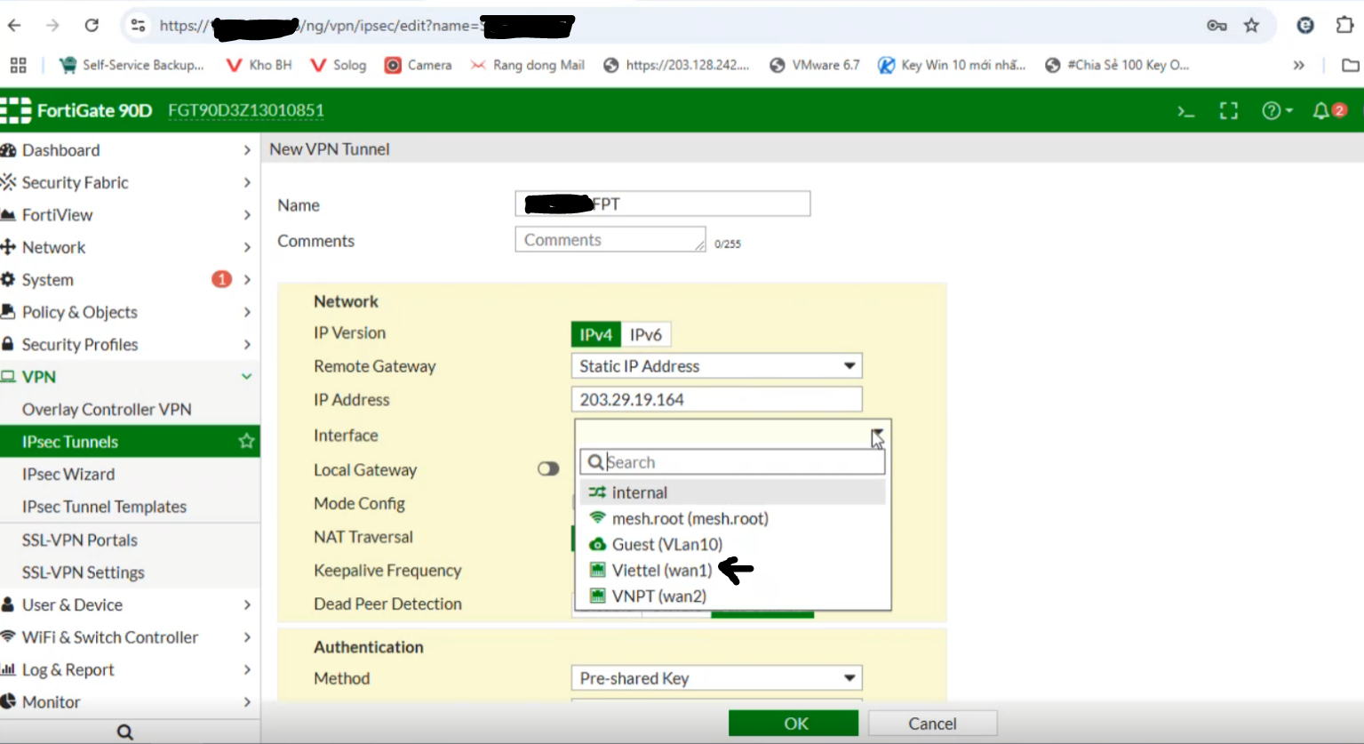 Bước 2: Cấu hình IPsec cho Fortigate