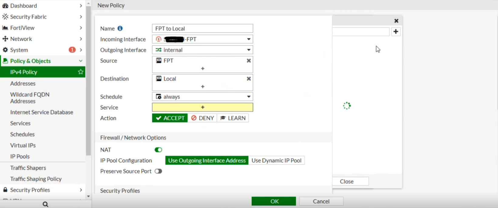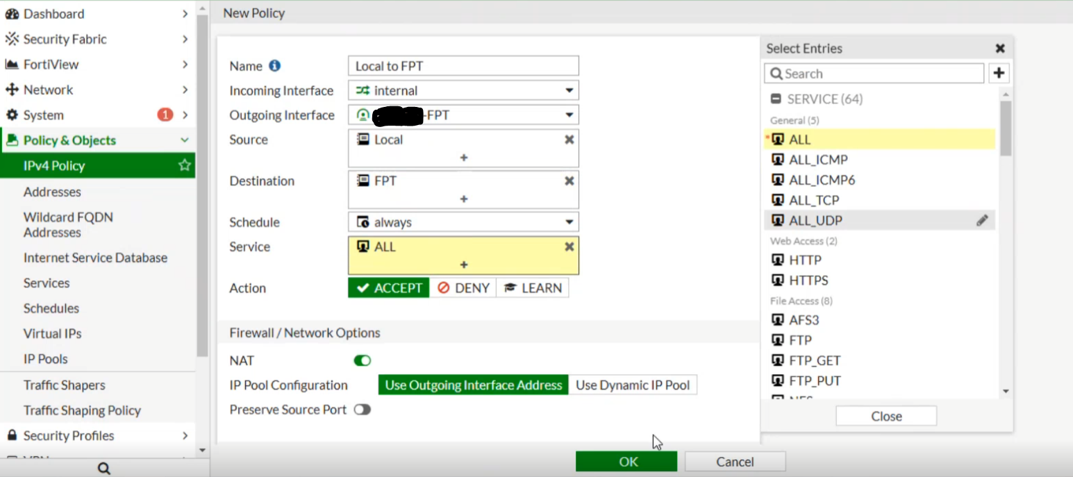• Tạo từ FPT Cloud tới Fortigate: