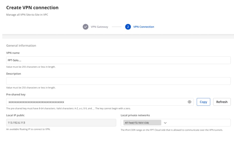 Truy cập và tạo VPN Site To Site trên trang https://console.fptcloud.com/