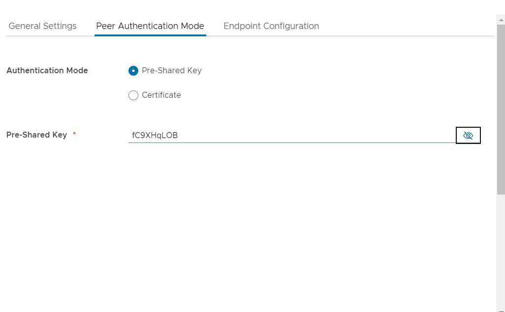 • Truy cập hệ thống VMware để set up thông tin kết nối VPN Site to Site. file - Tại tab Peer Authentication, với thông số Pre-shared key, nhập key đã đã tạo ở OSP, sau đó ấn Next. file