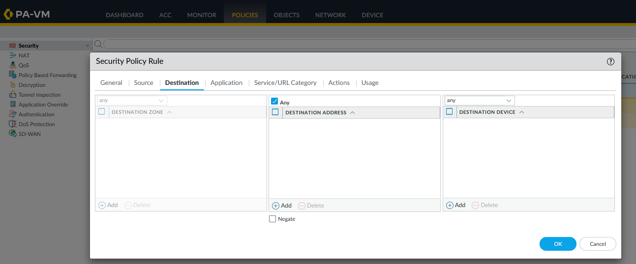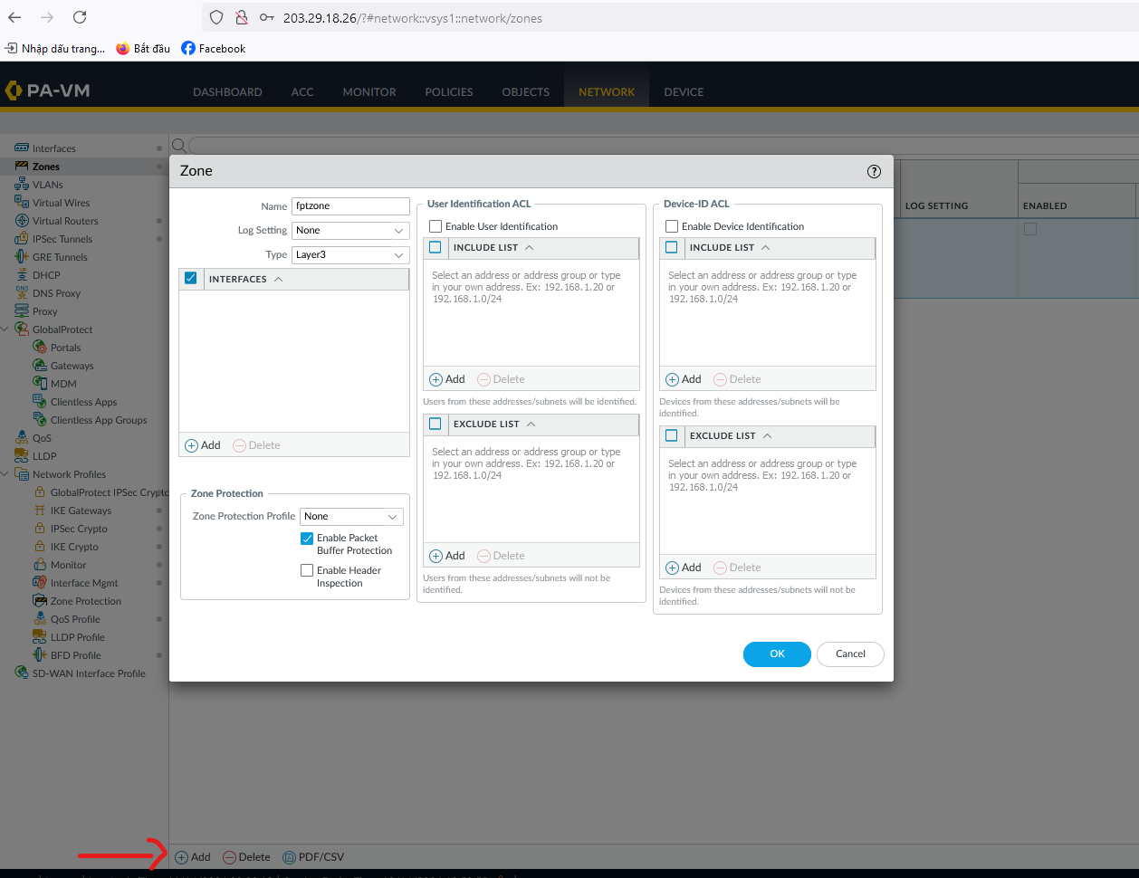 - Chọn Add và kích hoạt Zone của Palo Alto